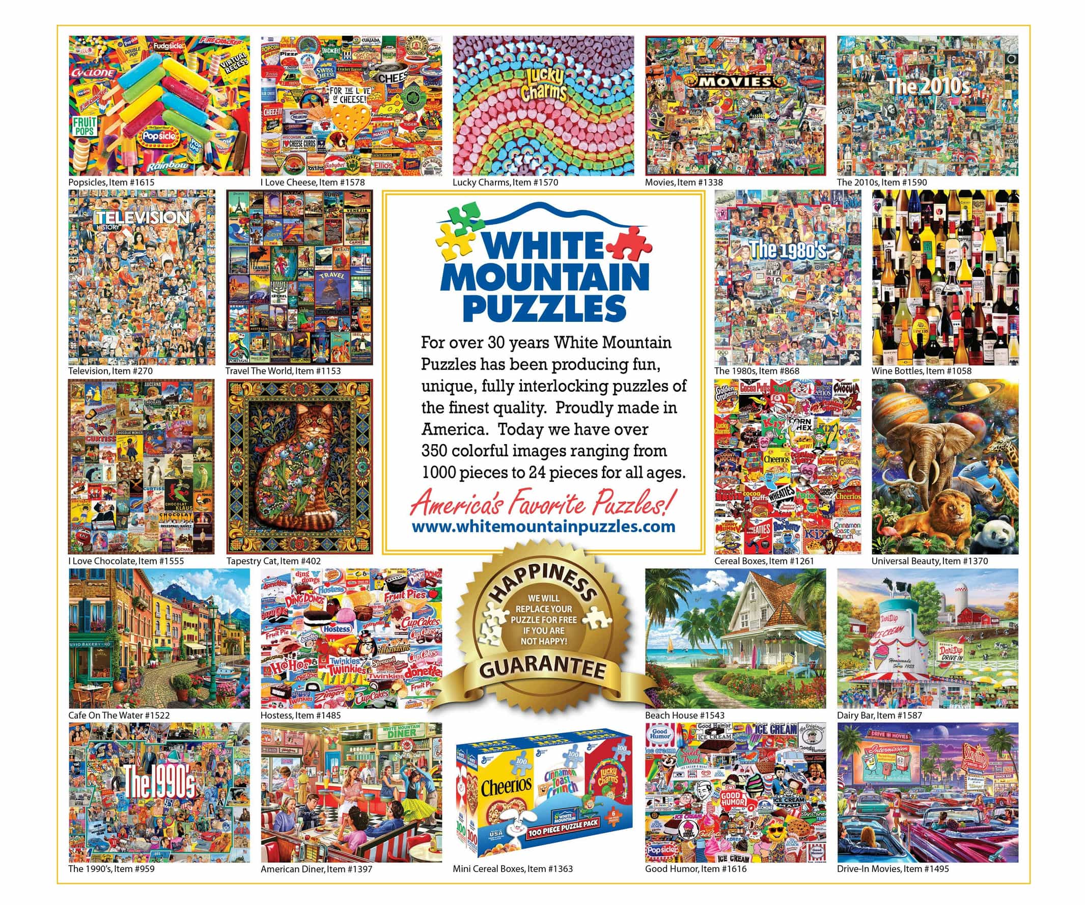 Every White Mountain Puzzle includes our HAPPINESS GUARANTEE: If you are not completely delighted with your puzzle experience, we will replace your puzzle with a new one for free.